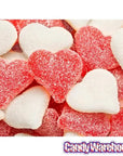 Bag contains 4.5 pounds of Sour Sanded Red & White Gummy Hearts.