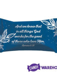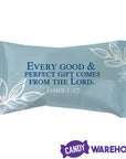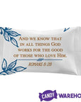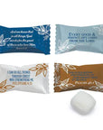 Perfect for church events or just a spiritual revival in your own home, these mints will keep your breath minty fresh as you study the holy scriptures! A cross and a bible verse from are printed on each wrapper. The assortment includes verses from both the old and new testaments.