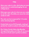 Upon arrival, your Cotton Candy Cake is ready to enjoy! Each cake comes with an instruction card detailing how to care for your cake, ensuring it remains fresh and delicious. Here are some important tips for storing your cake: