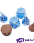 Bag contains 31 ounces of Light Blue Hershey's Kisses and Reese's Peanut Butter Cups Miniatures Candy.