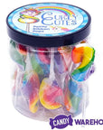 Jar contains 20 individually wrapped Rainbow Cherry CurlyCutes Pops Petite Ribbon Lollipops.