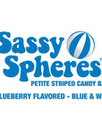 Bag contains 5 pounds of Blue Sassy Spheres Petite Striped Candy Balls.