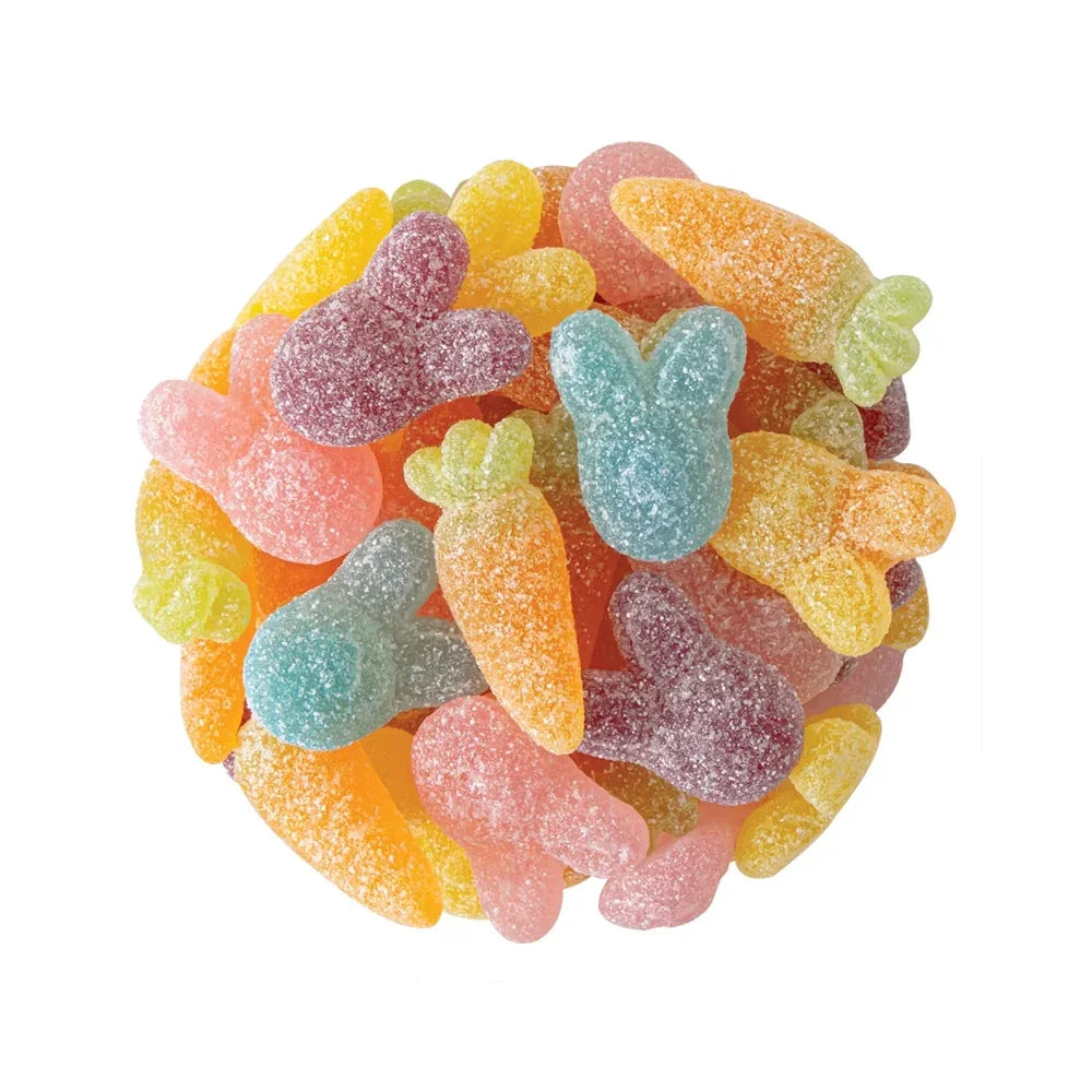 Have some fun with your food and pretend you’re Bugs Bunny while eating his favorite snack in sweet form with our collection of candy carrots. These brightly colored orange snacks come in a variety of tasty carrot candy forms. From rich milk chocolates wrapped in orange and green foil to soft, chewy gummies, we’ve got all your carrot shaped candy needs covered. Dive into a bag of our adorably colorful Jelly Belly peas and carrots candy mix: a sweet vegetable medley with realistically shaped sugary veggies. The bags are filled with 10 lbs of yummy fruity flavored bonbons that come in two flavors: green apple and orange sherbert. Don’t let these cute treats fool you: they have a deliciously tangy flavor. So go ahead and tap into your inner child and give yourself a cheat day with these veggie shaped sweets found at Candy Warehouse.