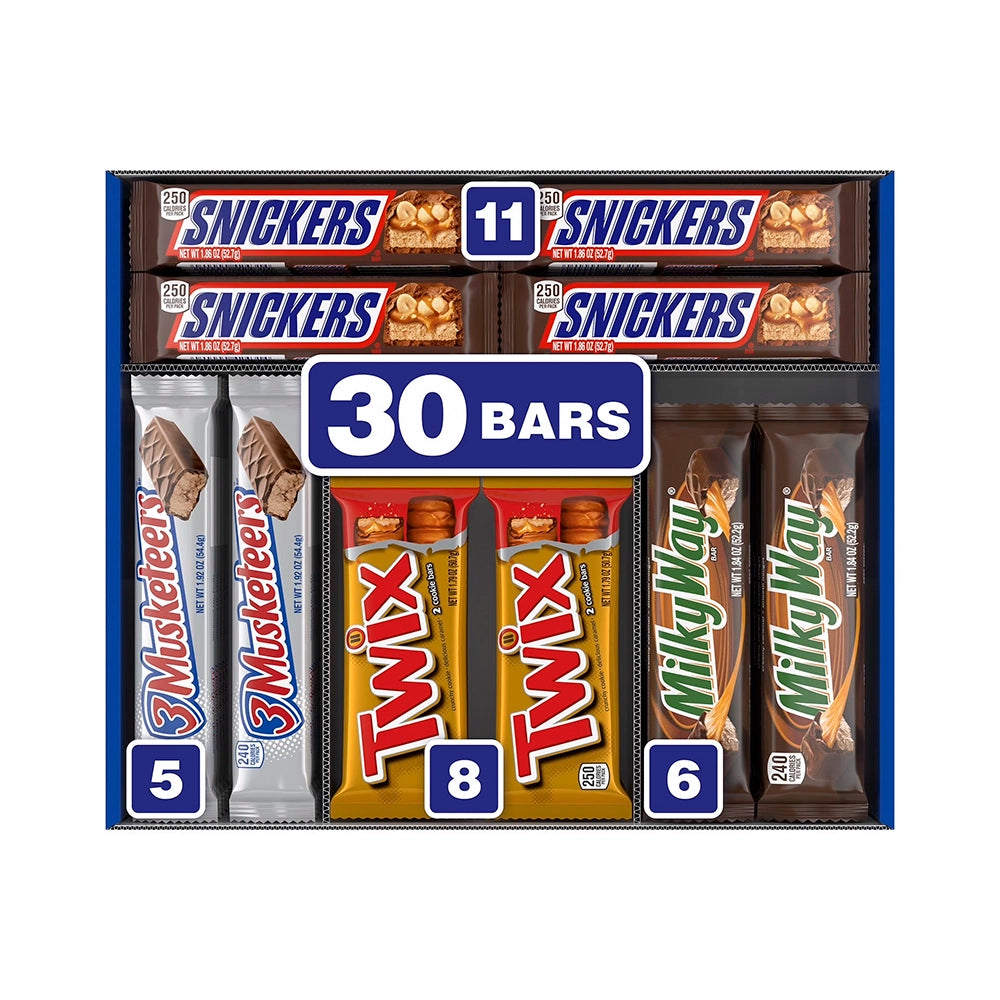 Mars candy brands include the most recognized in the world like the famous M&M, which is a candy-coated chocolate pastille available in flavors such as Milk Chocolate, Peanut, Dark Chocolate, Almond, and Peanut Butter. Introduced in 1979, the Twix bar, which is a dual cookie bar topped with silky caramel and covered in milk chocolate, became an instant hit as one of the first multi-textured treats. Mars Inc not only produces the most popular chocolate products in the world but has also mastered the fruity candy niche with the chewy, bite-sized rainbow of flavors known as Skittles, and the luxuriously chewy, mouthwatering Starburst, which comes in Fruit Chews, Minis, Gummies, and Jellybeans. When looking for the perfect candy, chewing gum, or chocolate bar to satisfy everyone’s tastes, you can’t go wrong with the vast selections from this legendary confectioner available at Candy Warehouse!