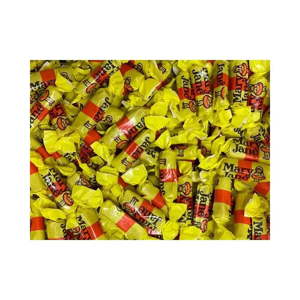 Mary Jane Candy is truly nostalgia in a bag. Rip open a bag today and a grab one of the individually-wrapped treats inside that has been satisfying sweet cravings for more than 100 years. Invented in the Miller family’s kitchen, Mary Janes are an old fashioned candy constructed of molasses and peanut butter. The ingredients are right on the front of the bag! Now, powerhouse Necco manufactures these taffy-like treats. But, what sets this delightful dessert apart from its competitors is the nostalgic look of the branding. A little girl graces the front of the box in the same illustration and bold red and yellow coloring used when the treat first hit penny stores in 1914. Shop Candy Warehouse for the latest bulk options of this delectably delicious dish-filler. Classic 11-ounce bags are perfect for a small crowd, while 240-piece tubs or 30-pound cases are fit for a block party!
