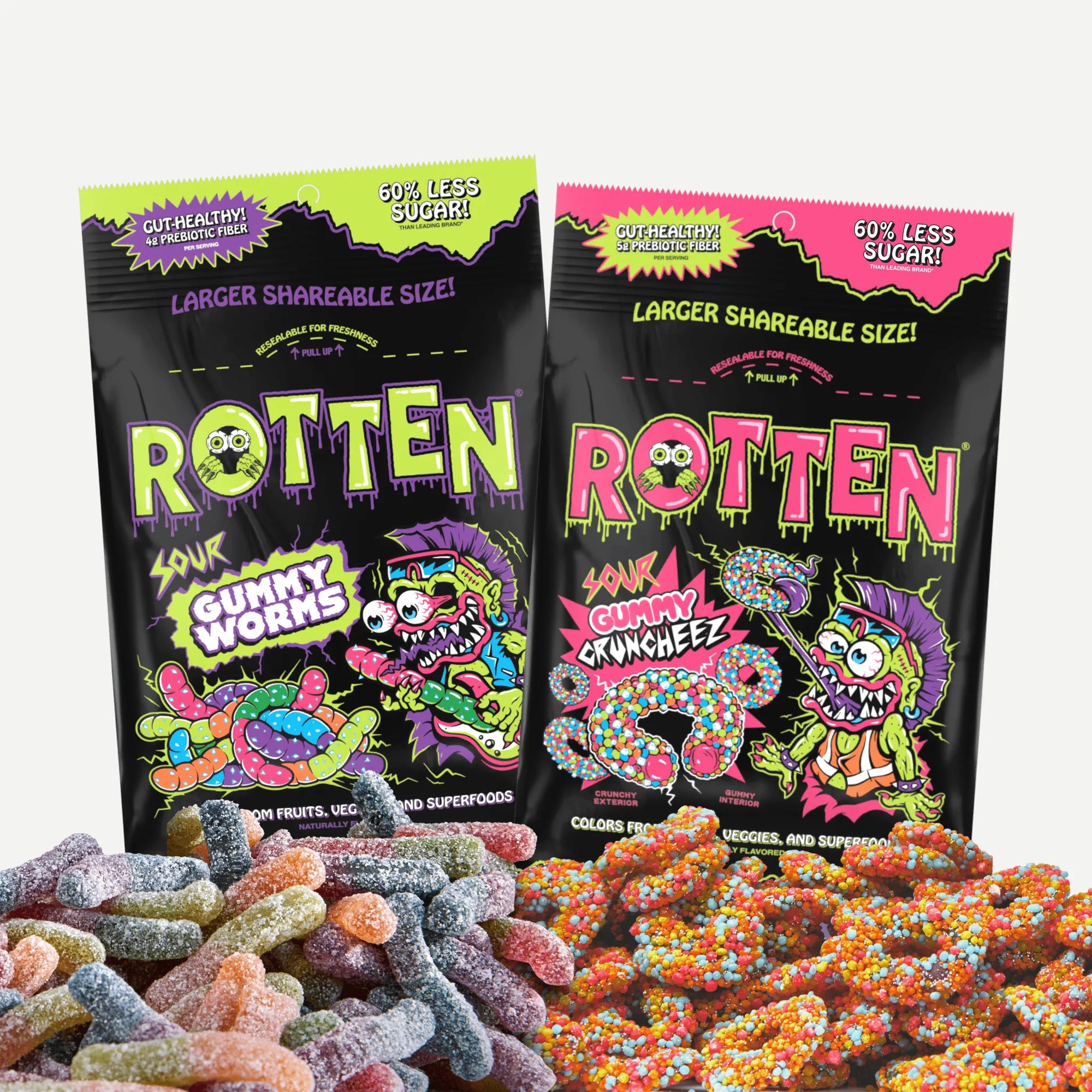 Rotten Gummy Worms brings a new and unique twist to the world of candy. These unique treats are designed for those who crave an adventurous and unconventional snacking experience. With an eerie aesthetic and a taste that defies expectations, Rotten Gummy Worms offer a perfect blend of sweet and sour flavors, enhanced by an unexpected, thrilling twist.