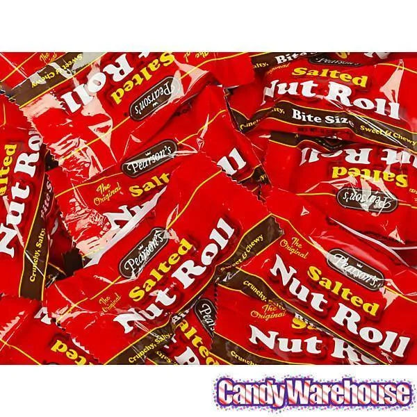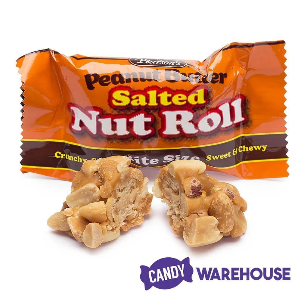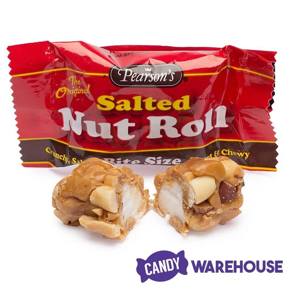 When you rip open a Salted Nut Roll, youβre ripping open an experience. Try it for yourself! A chewy, slightly creamy nougat center starts off this unique sweet treat in the best way. Next, a layer of decadent caramel wraps the nougat tightly for a perfectly balanced delight that hits the taste buds like an oncoming freight train of magical bliss. But, what really makes this roll stand out from the crowd is the outer coating of salted Virginia peanuts. The combination of the three is as mouthwatering as it is classic! Take a bite out of a sweet-and-salty Pearsonβs Salted Nut Roll today, or better yet, finish an entire piece of this peanut candy for yourself. Available now at Candy Warehouse in bulk options like 80-piece bags and even two-pound logs, thereβs enough to stock your treat drawer with ease. Take a trip down memory lane with this delightful old fashioned candy and satisfy your sweet tooth with ease.