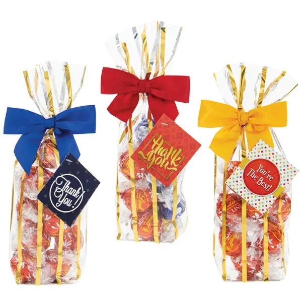 Do you know a chocolate lover who deserves a bit of thank you candy? Look no further than our selection of chocolate to find all your favorite flavors from Lindt®, Reese’s®, Ghirardelli®, and other brands that know how to keep you coming back for more. Lindt’s gourmet chocolates are rich and creamy. Stock up on milk chocolate, dark chocolate, hazelnut, or white chocolate. Can’t decide? Try them all! Make someone laugh by slipping them a million-dollar chocolate bar, cloaked in a realistic wrapper. We also offer thank you mints in stick form, dipped in chocolate.