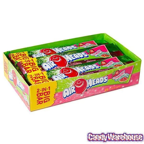Display box contains 24 AirHeads Taffy Candy Bars - Sour Watermelon Punch, each with a net weight of .55 ounce.