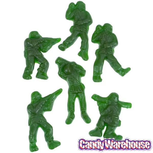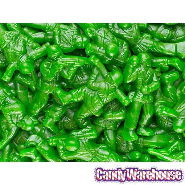 Bag contains 5 pounds of Green Gummy Army Guys Candy.