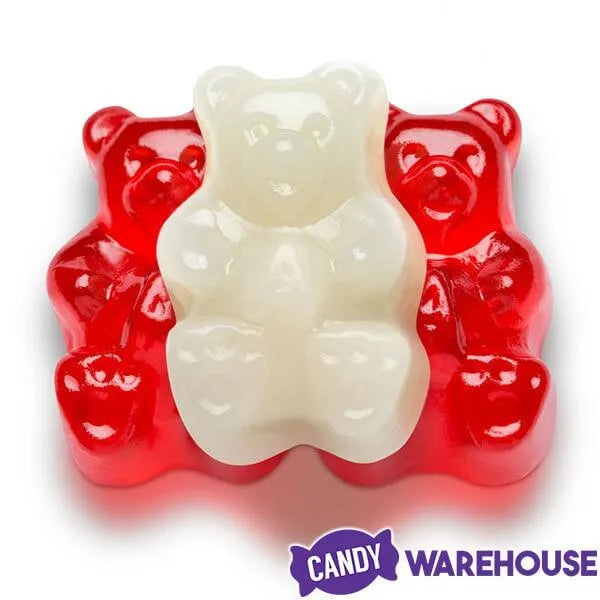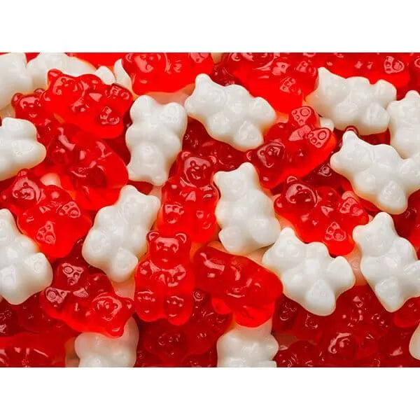 Delightful red and white gummy bears featuring flavors of Wild Cherry and Strawberry-Banana.... these perky bears have left hibernation just in time for Valentine's Day!