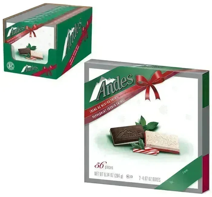 Spread holiday cheer with the irresistible combination of creamy chocolate and refreshing mint in the Andes Crème de Menthe Christmas Gift Box. Each 9.34-ounce box is packed with the signature melt-in-your-mouth treats everyone loves. With 12 gift boxes per case, you’ve got plenty to make spirits bright—whether it’s for the office, friends, or family.