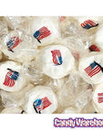 Bag contains 3 pounds of Peppermint American Flag Nougat Fluff Taffy.