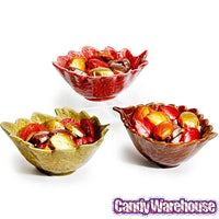 Decorative ceramic bowls in an assortment of leaf designs make for the perfect candy or nut dish for autumn seasonal parties!