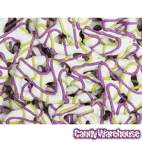 Adorned in the colors of the season, salty pretzels are dipped in yogurt and drizzled with frosting of purple and green colors to create this decadent delight. No one will be able to resist the taste of this sweet and salty combination confection!