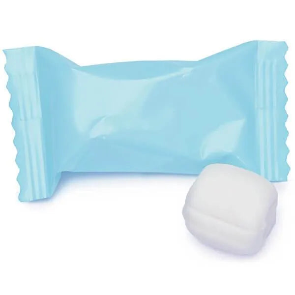 These Baby Blue Wrapped Buttermint Creams will never give you the blues, baby. A velvety smooth white mint enclosed will softly melt in your mouth. Perfect for a cerulean wedding or a cobalt baby shower. The sky’s the limit, and the color!
