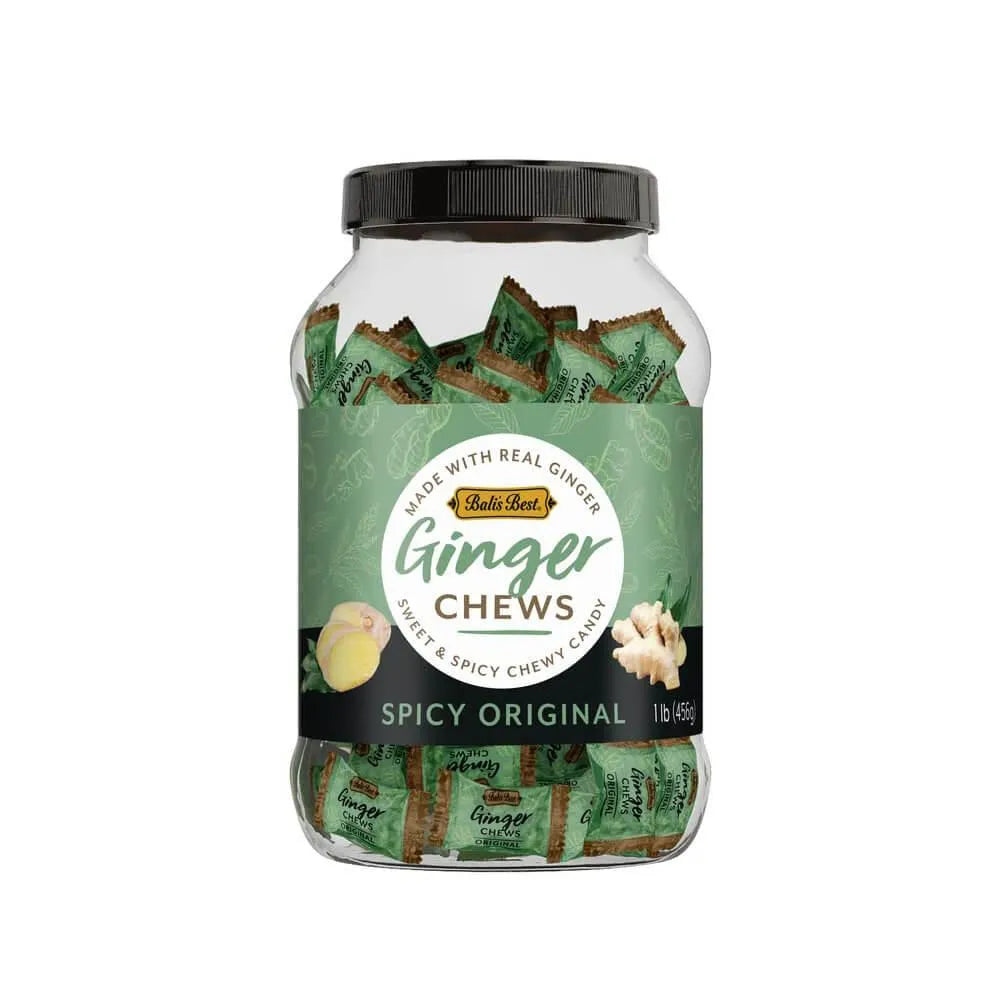 Bali’s Best Ginger Chews are deliciously sweet and soothing candies crafted with 100% real ginger. Known for its numerous health benefits around the world, ginger is prized as a simple and flavorful way to promote digestive health and soothe the senses. Crafted with 100% real ginger, delicately infused with natural flavor, and with no preservatives, high fructose corn syrup, or artificial ingredients, Bali’s Best Ginger Chews are individually wrapped for an easy and tasty way to enjoy the health promoting benefits of ginger on the go.Jar contains 1 pound of Bali's Best Spicy Ginger Chews: 1LB Jar, that's about 110 pieces.