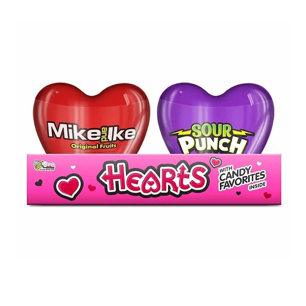 Bee International Valentine Plastic Hearts - Airheads, Mike & Ike, and Sour Punch Twists: 12-Piece Box