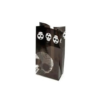 Create creepy Halloween confection goodie bags with these black cellophane bags featuring white skeleton heads.