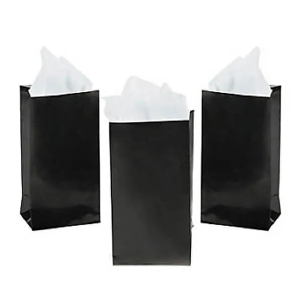 Well, stop fretting, people, because there is a solution -- simply send your visitors off in style with snazzy mini treat bags! These sleek black beauties measure 6.5 inches in length, making them ideal for holding a fair-sized smattering of everyone’s favorite candies. Fill them with crepe paper for a fashionably flirty look, or just let you friends load them up with whichever sweets they desire. Perfect for mixing and matching with colored candy buffets! Isn’t it time to make your party favors as fun as the party itself?