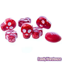 Lock your doors and close your blinds--there's a hungry monster on the loose! He tears through the town in the dead of the night, leaving nothing but delicious blood-covered skulls in his wake. Like evidence of a gruesome crime, tiny, shiny craniums lay together in a jar like tossed-off remnants from a carnivorous feast. Terrifyingly tasty, these white pressed sugar skulls are sweet tart candies with a red coating that looks eerily like blood. Empty eye sockets stare deadly at nothing, while jaws gape in a perma-grin against a splotchy red devil-may-care color design. Unearth these delectable treats for your Halloween candy bowl to fright and delight all season long!