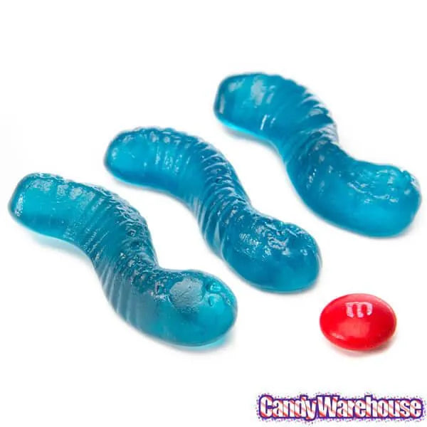 Featuring a translucent, Caribbean blue color, these blueberry-flavored mini gummy worms are perfect for light snacking. Largely considered the dwarves of gummy worms, these chewy arthropods offer the same amount of flavor in a petite, bite-size portion. Often used to bait small children to chores, bedtime, and being nice, these candy creepers slither down the hatch quite quickly if unattended for long.