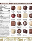 Dark Chocolate Mocha Creme, White Chocolate Coconut, Dark Chocolate Orange Creme, Dark Chocolate with Caramel and Vanilla Creme, Dark Chocolate Raspberry, Milk Chocolate Salted Caramel, White Chocolate Raspberry Yogurt, Caramel Hazelnut Creme, Milk Chocolate Hazelnut, White Chocolate Coffee Creme, Dark Chocolate Pistachio, White Chocolate Vanilla Mousse, White Chocolate Hazelnut Creme, Dark Chocolate Coffee Creme, Milk Chocolate Orange Ganache, and Milk Chocolate Caramel