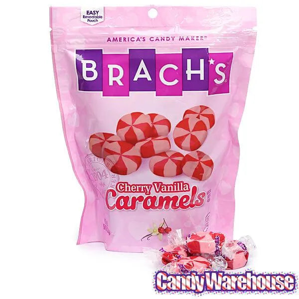Bag contains 9 ounces of Brach's Cherry Vanilla Pinwheel Caramels.