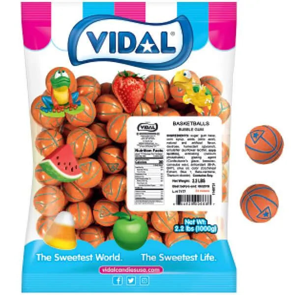 Bag contains 1 kilogram (~2.2 pounds) of Basketballs Sour Powder Filled Gumballs Candy.
