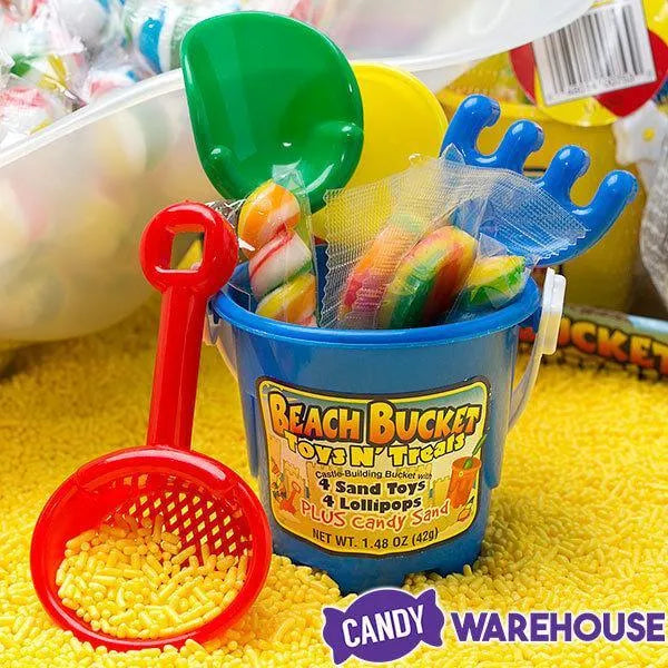 Display box contains 12 Mini Beach Buckets Toys-n-Treats Packs. Each with a net weight of 1.48 ounces