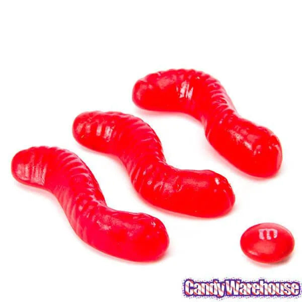 Bag contains 5 pounds of Cherry-flavored Gummy Inch Worms.