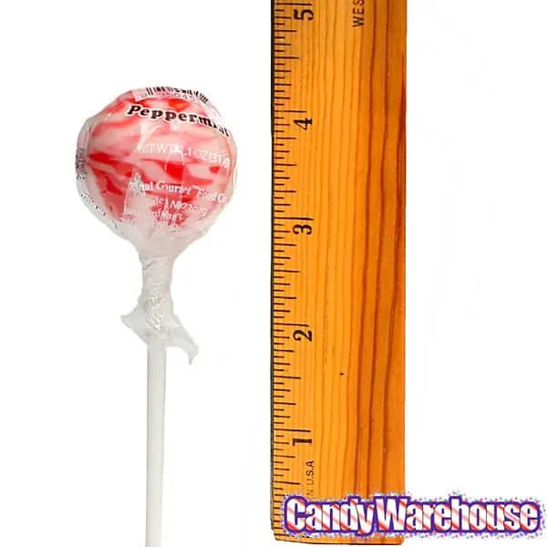 Display box contains 48 Peppermint Bark, Candy Cane, and Sugar Cookie Hard Candy Christmas Ball Lollipops, each with a net weight of 1 ounce.