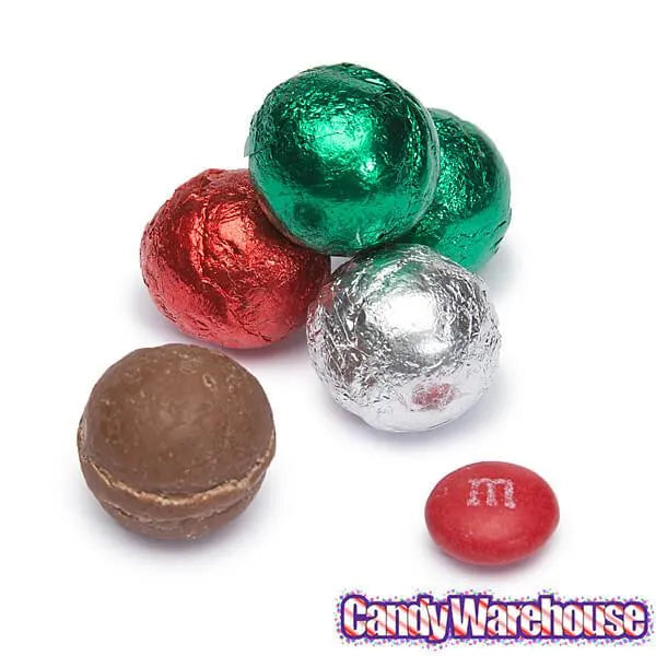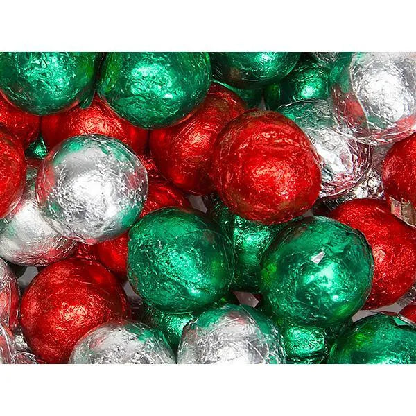 Add shimmer and sweetness to your holiday candy display with Palmer Chocolatey Holiday Foiled Balls! Each smooth, chocolate-flavored ball is wrapped in shiny red, green, or silver foil for a festive touch that instantly brightens candy trays, buffets, and bulk bins.