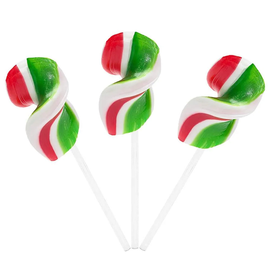 Jar contains 20 individually wrapped Christmas Peppermint CurlyCutes Pops Petite Ribbon Lollipops.