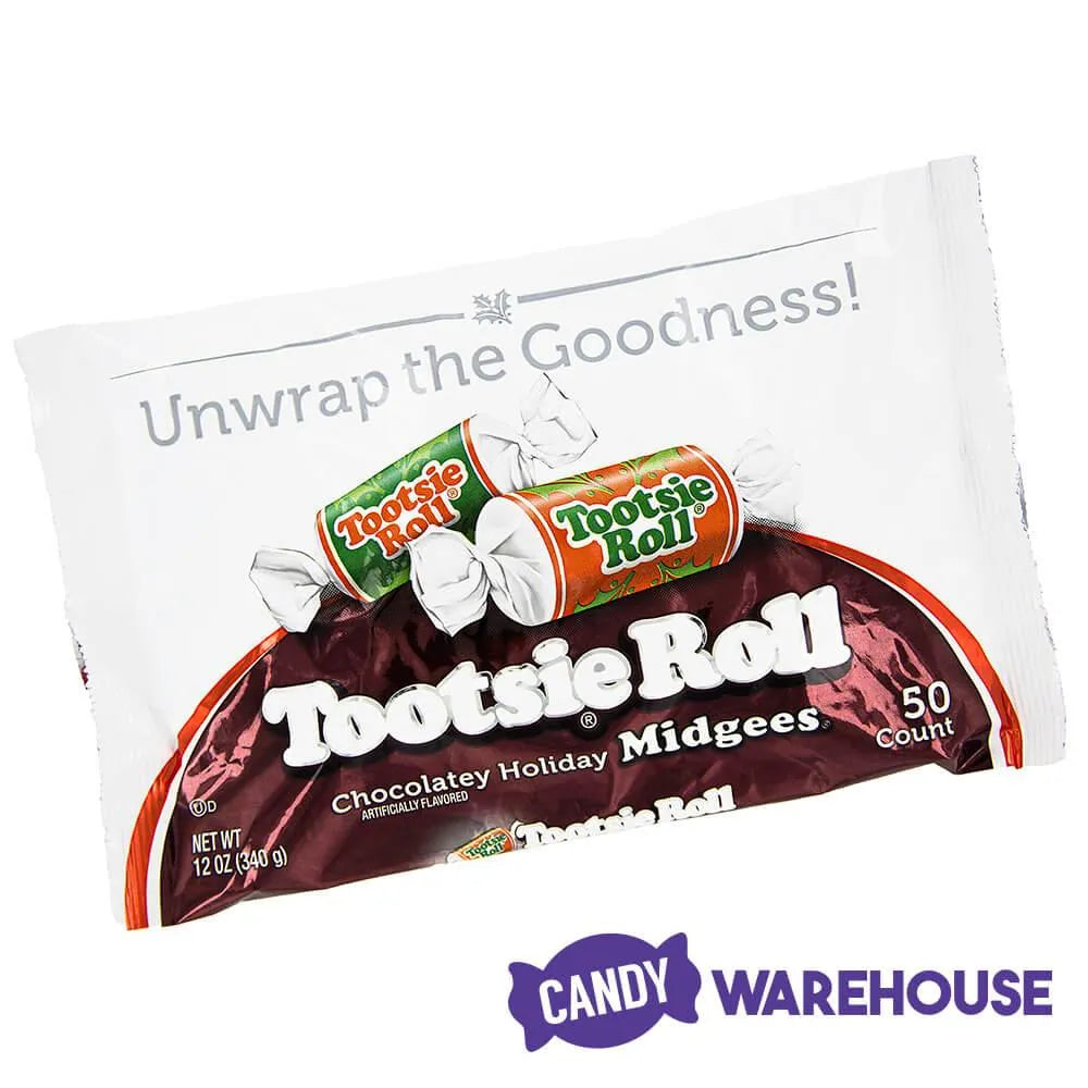 Bag contains 12 ounces of Christmas Tootsie Roll Midgees Candy... that's about 50 pieces.