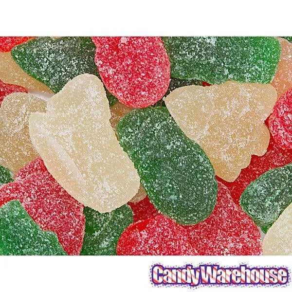 Cute toy chest designs are crafted from mouthwatering pectin jell to celebrate the season in flavors of cherry, green apple, and pineapple. Sparkling sugar crystals finish each piece to perfection!
