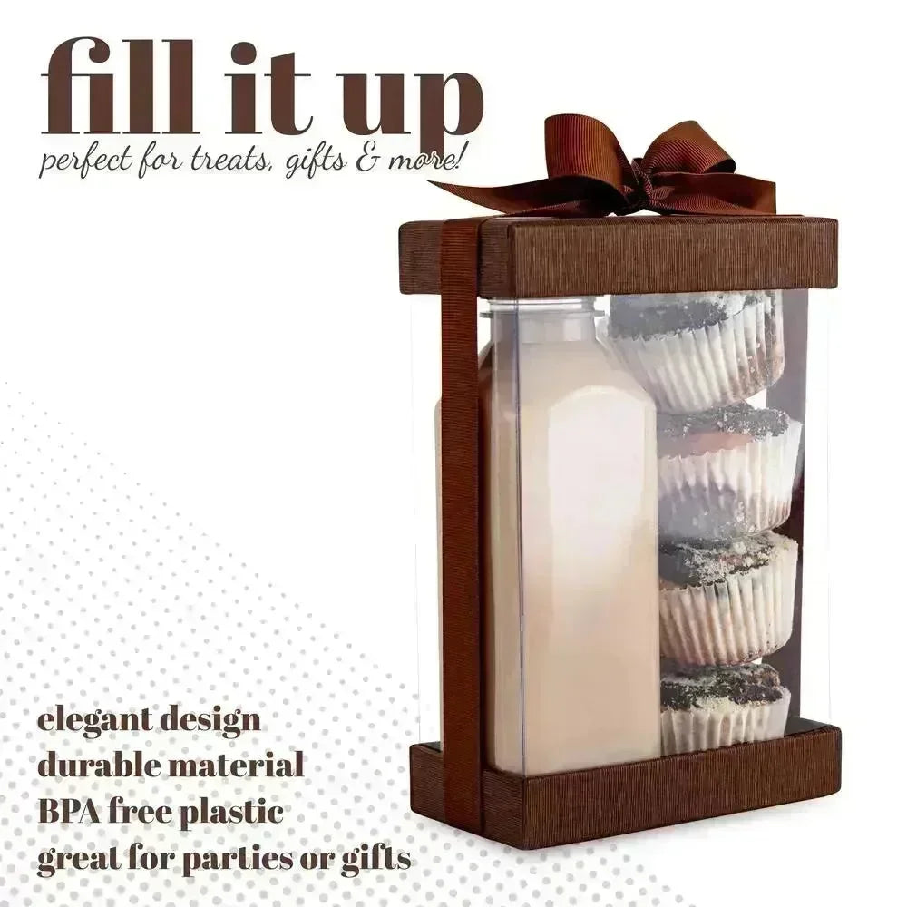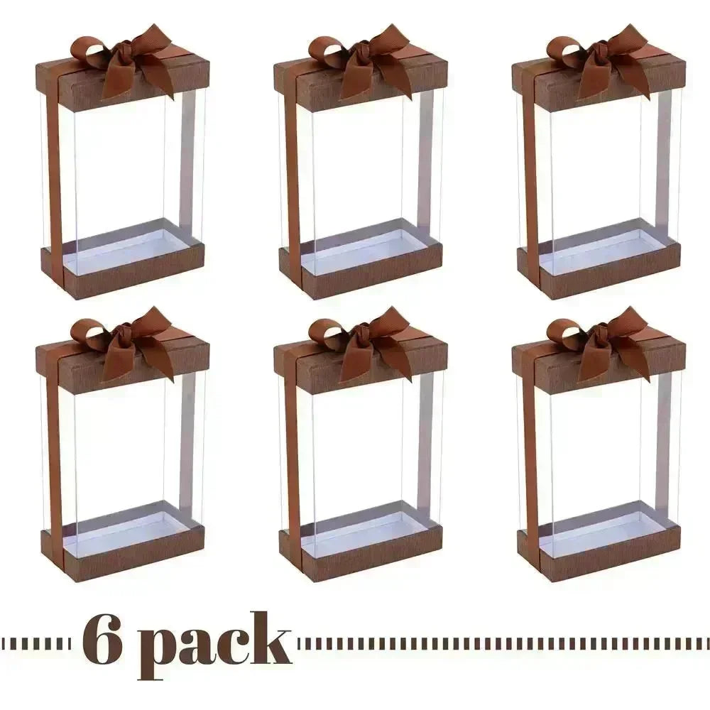 Clear Brown 7.5X5X2.5 Gift Boxes 6 Pack Bakery Boxes With Base Lid & Ribbon