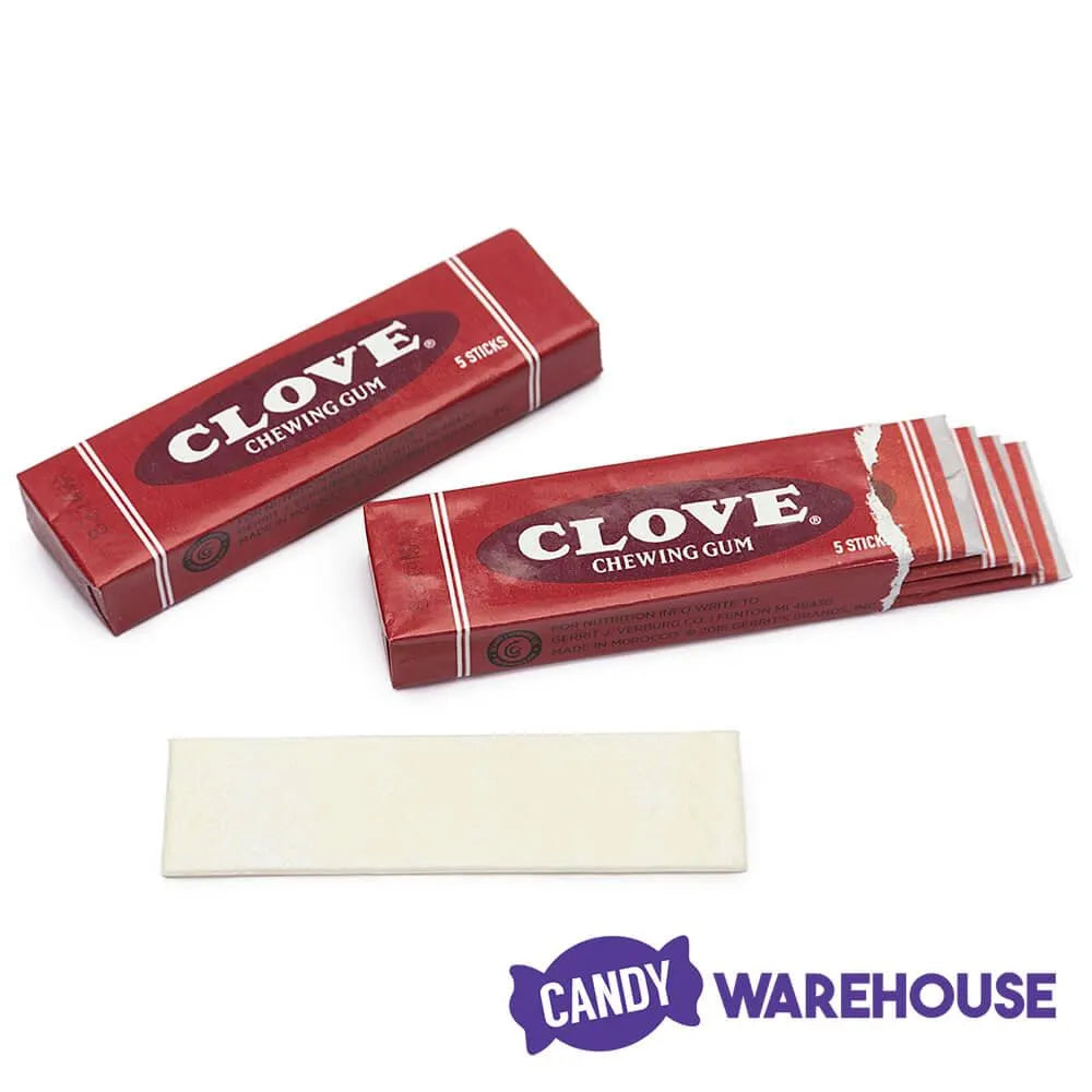 Candy Warehouse is your source for delicious Clove chewing gum that gets its spicy taste from all natural clove oil. Each pack contains 5 sticks of aromatic clove gum that will remind you of bygone years. Clove chewing gum is a healthy change from the usual fruit-flavored gums of today, and it’s the perfect treat for anyone needing gum without aspartame due to allergies. You’ll savor a refreshing burst of classic clove gum flavor with a hint of cinnamon. A 20-piece box is ready to ship, and this hard to find gum is available now, so buy Clove chewing gum at Candy Warehouse.