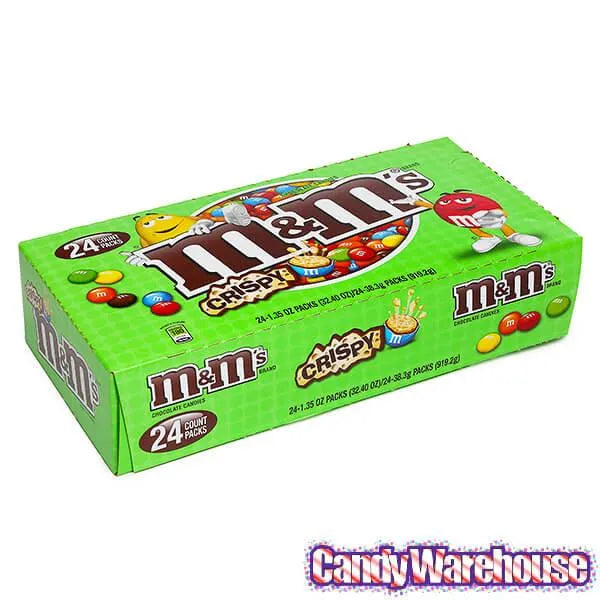 Display box contains 24 Crispy M&M's Candy Packs, each with a net weight of 1.35 ounces.