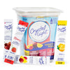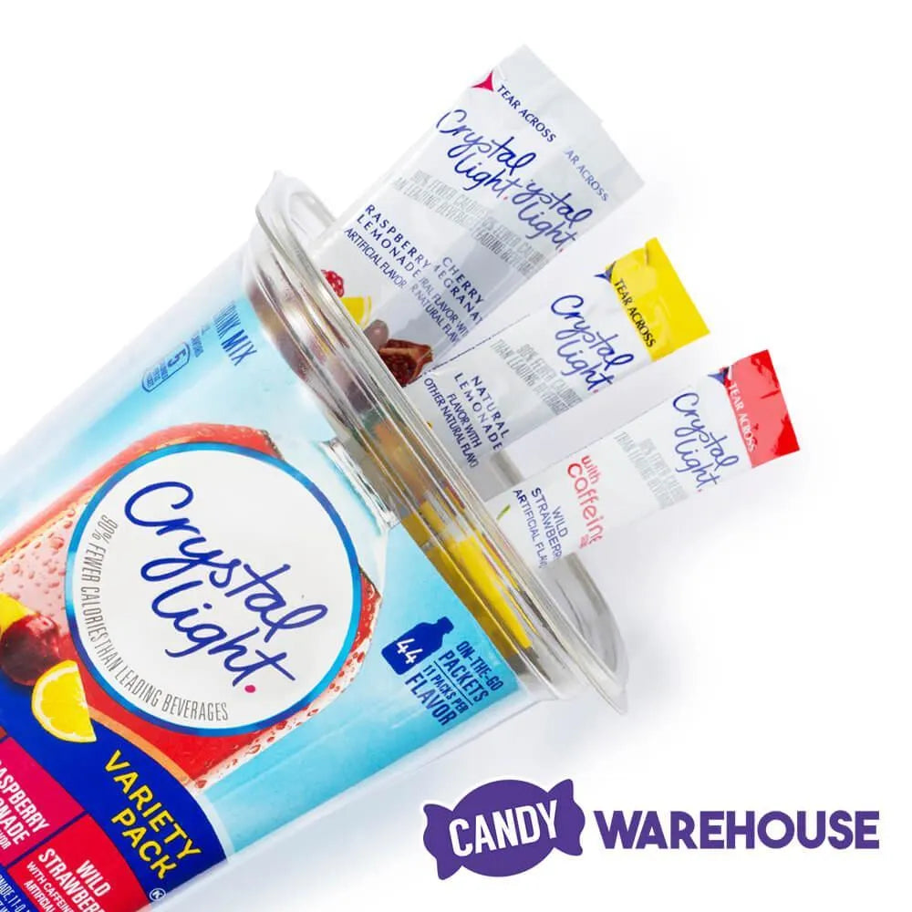 Keep your taste buds on their toes by making hydration fun with a Crystal Light drink mix variety pack. This 44-piece tub is filled with portable, convenient on the go packets that turn your 17-ounce water bottle into a refreshing fruity beverage. You get 11 packets each of four of the most popular Crystal Light flavors: cherry pomegranate, wild strawberry, raspberry lemonade, and natural lemonade. Crystal Light caffeine lovers find 60 milligrams of energy-boosting caffeine in every packet of the wild strawberry flavor. Best of all, each powdered drink mix in this 44-count variety pack is sugar-free and contains only 10 calories per packet, giving you a tasty sweet treat that doesn’t break your diet. Count on Candy Warehouse to stock all of your favorite low- and no-calorie Crystal Light products at a price you can drink to.
