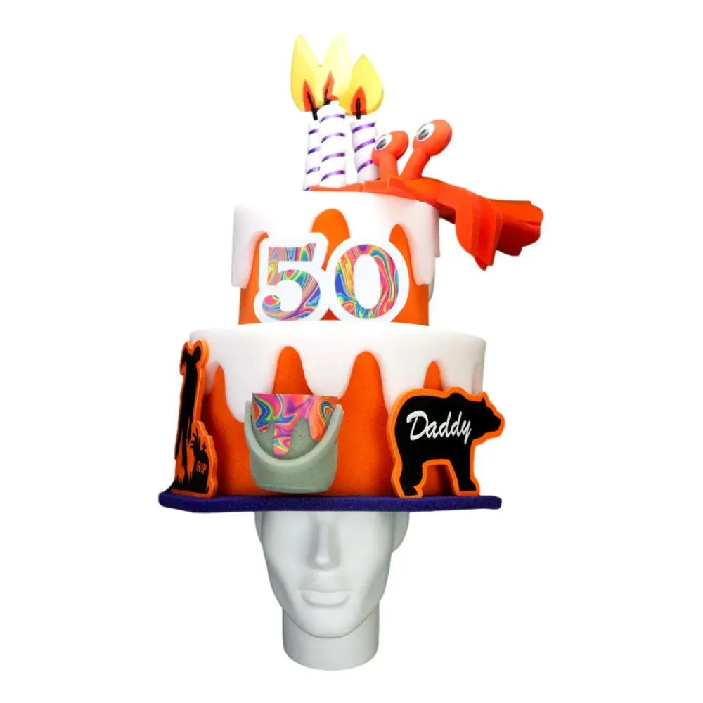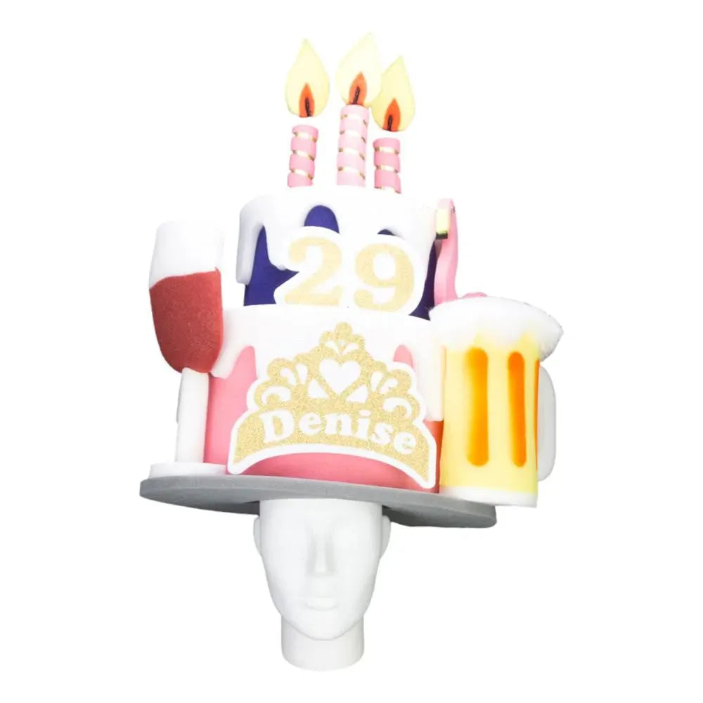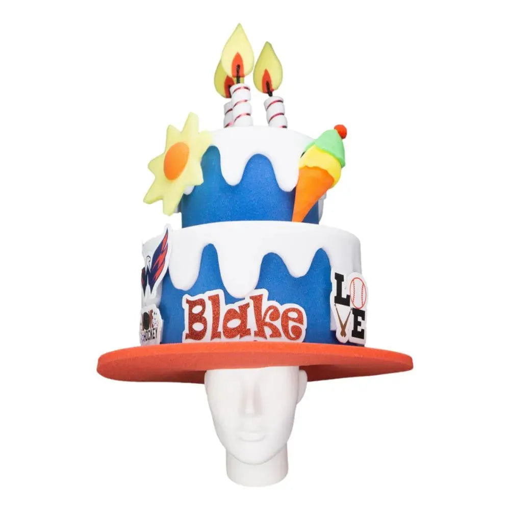 This Custom Birthday Cake Hat will definitely make you stand out at your next Party, Hora Loca, Wedding, Corporate Event, Birthday, Quinceanera, or Halloween Party! It can be used as a wedding hats, top hats, photo booth props, or a party favor.