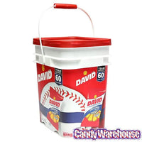 Bucket contains 60 David Sunflower Seeds Bags, each with a net weight of 1.75 ounces.
