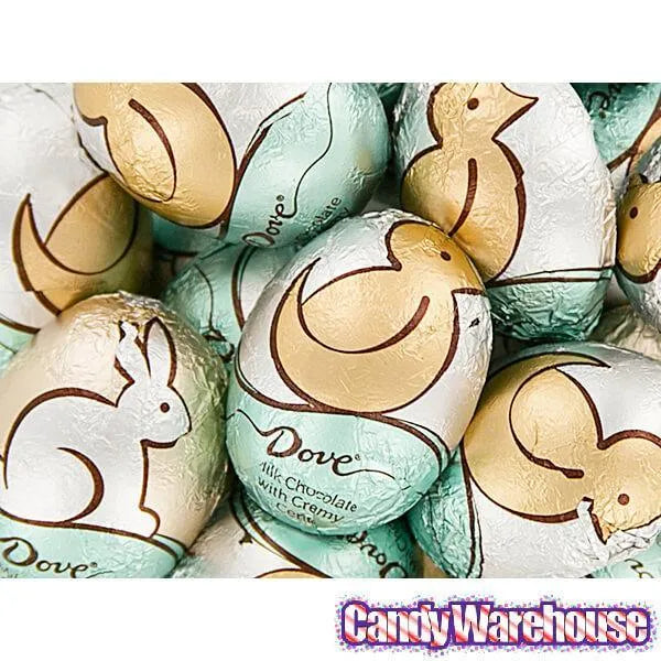 Perfect for the Easter candy dish, these Dove silky smooth milk chocolates with creamy chocolate centers are wrapped with elegant metallic foils featuring bunnies and chicks.