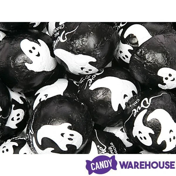 Bag contains 8.87 ounces of White and Black Foiled Dove Milk Chocolate Ghosts.