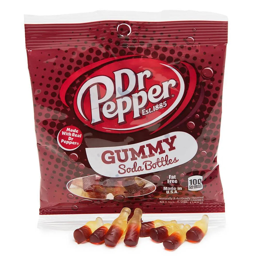 Delicious gummy soda bottles featuring a fabulous Dr. Pepper flavor!