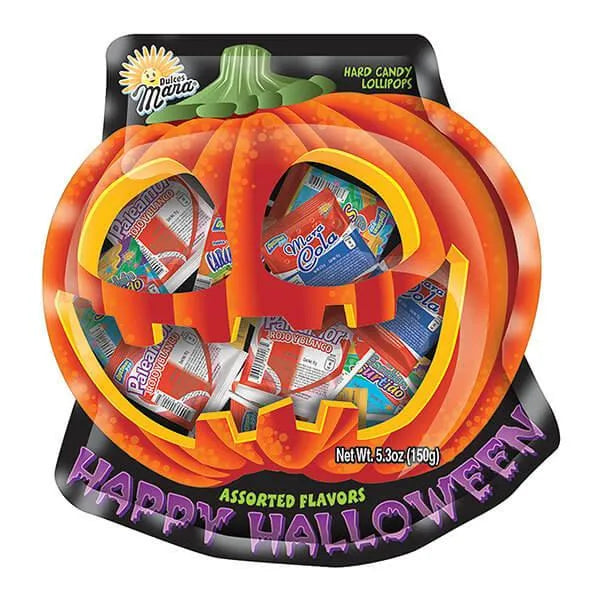 Add some south-of-the-border, international flair to your trick-or-treat candy offerings with Dulces Mara Halloween pumpkin lollipops. This 12-piece bag of assorted lollipops comes all the way from the small town of Tabasco in the state of Zacatecas, where a company that’s been committed to regional development for over 35 years is legendary for its fun and flavorful confectionary creations. Dulces Mara hard candy lollipops in assorted flavors are perfect for filling your party favor Halloween candy bags. Remember that Candy Warehouse not only sells hundreds of bulk Halloween candy products from all around the world, but we sell fun Halloween candy bags too!