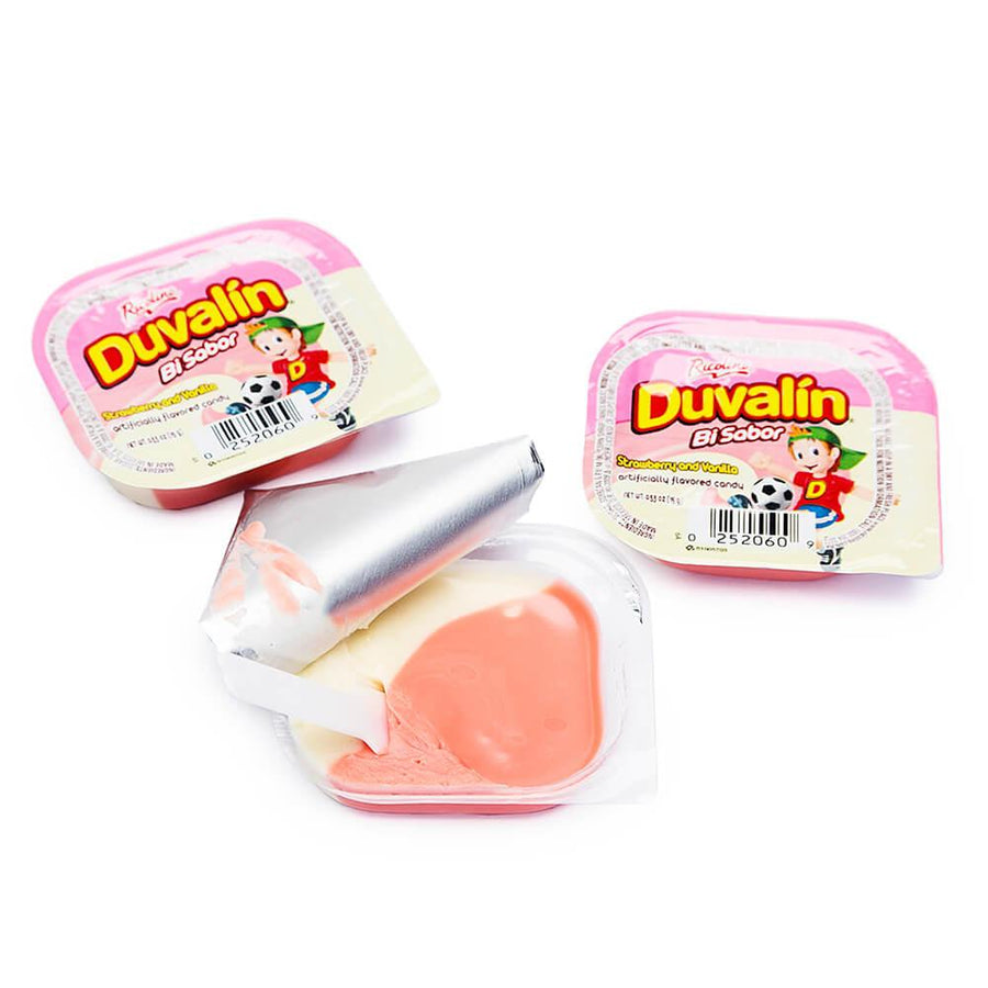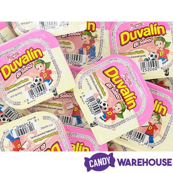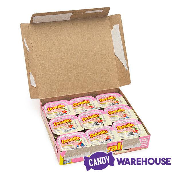 Display box contains 18 packs of Duvalin Strawberry and Vanilla Candy.