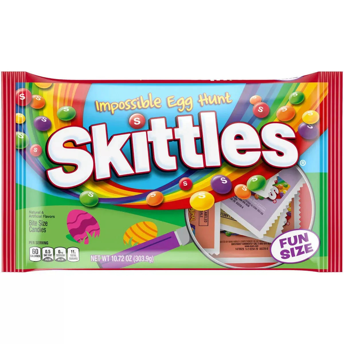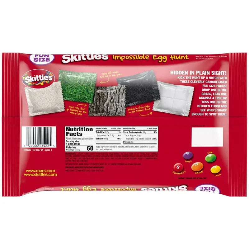 Bag contains 20 Easter Themed Fun Size Packets of Skittles Candy with a total net weight of 10.72 ounces.