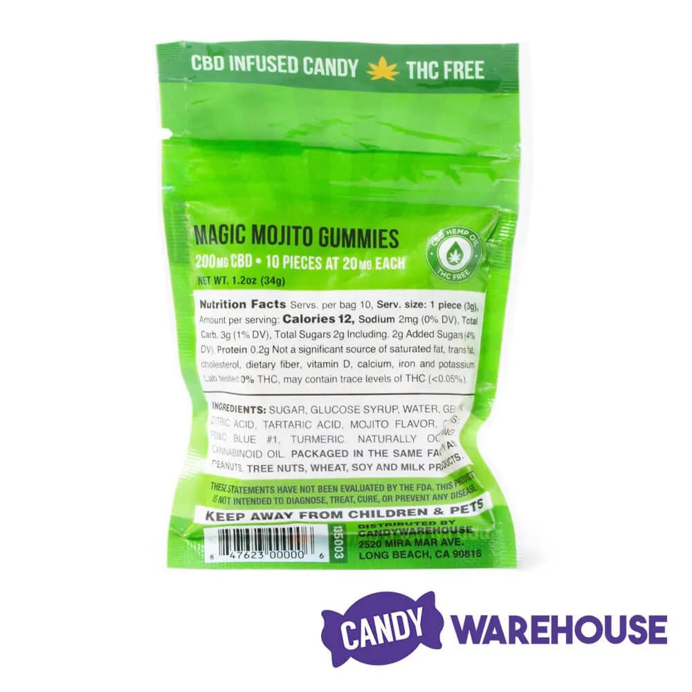 Rum lovers looking for CBD infused candy rejoice over Eddy Edibles sour mojito CBD gummies 200mg. You get that refreshingly tangy taste of lime, mint, and sugar without all the hassle of muddling, and you get high-quality THC free CBD edibles. Each of the 10 gummy bears (20mg each) features a soft, chewy texture and the delicious flavor of your favorite rum cocktail. These boozy gummy bears are coated with THC free CBD oil, making it easy for you to ingest the dosage you need in a delightfully discreet way. Be sure to check out the full menu of liquor-flavored CBD gummies at Candy Warehouse.