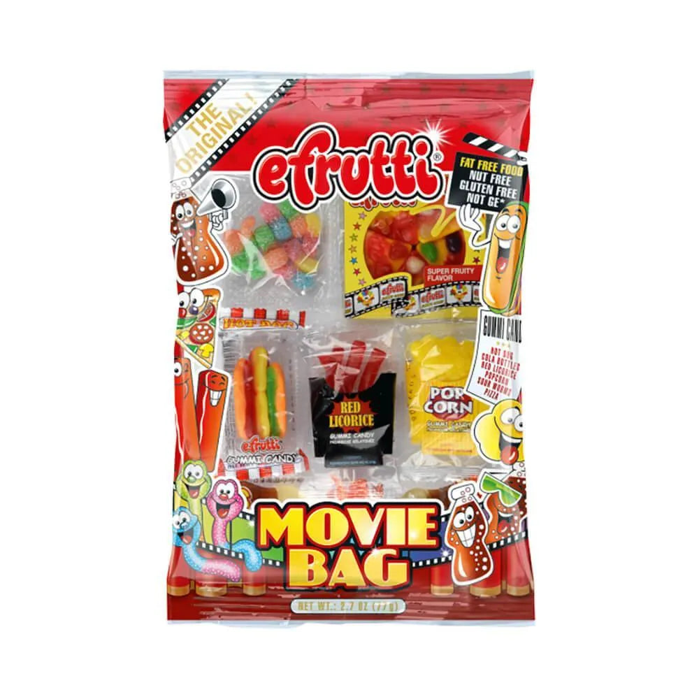 Box contains 12 Efrutti Gummy Movie Bags, each weighing 2.7 ounces.